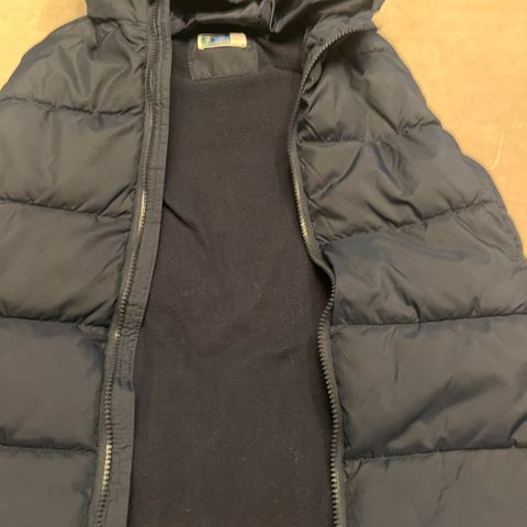 Champion vattert vest i blå farge, størrelse 158 for gutt. Laget av polyester materiale. Vesten har hette og glidelås i front.