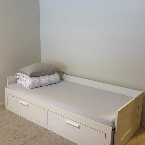 Selges da vi ikke ønsker å ha gavl grunnet plassmangel ☺️ Veldig hel og pen, kan ikke se noen bruksmerker. Usikker på merke, men den ble kjøpt på A-møbler sammen med sengen fra Wonderland. Ta kontakt for flere spørsmål!
