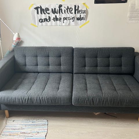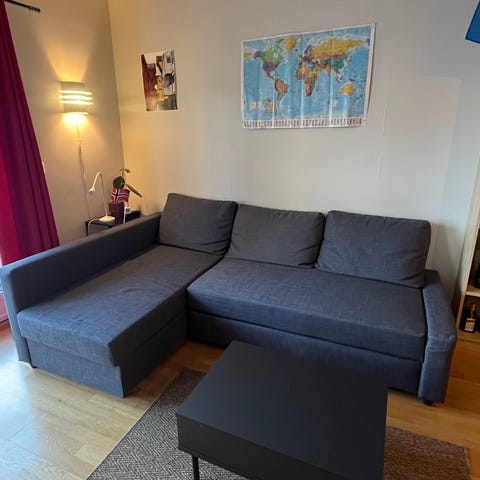 2 stykk pent brukt sofa (lengde 168 cm, bredde 67 cm). Selges med eller uten bord. Pris for sofa og bord 1500 kr per stykk. Pris for sofa 1200 kr eks. bord per stykk. Pris for kun bord 400 kr per stykk.