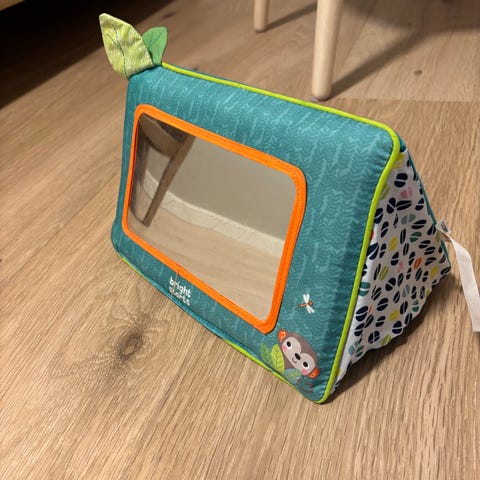 speil og hund som spiller musikk og lyser opp. speilet har noen bruks riper.