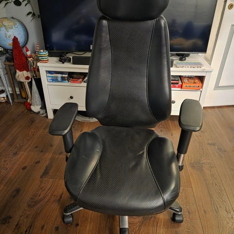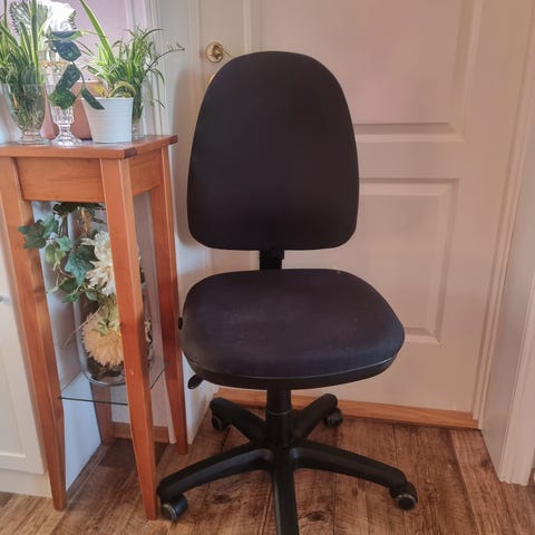 Pent brukt kontorstol. God å sitte i. Flere stiller for ryggen. Kan låses i forskjellige stillinger eller ha den i en vippestilling.