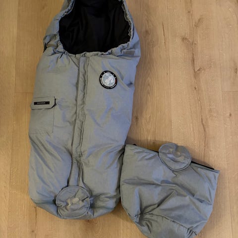 Vinterpose brukt av 3 barn. Posen er hel, varm og tett. Det er noen bruksmerker, litt slitasje på fargen i toppen se bilde.