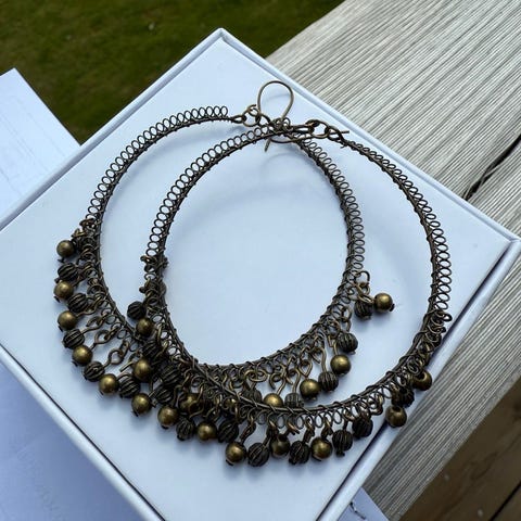 Fin ørepynt for hull i ørene. Ikke brukt. Kan sendes for 31 kroner som brev, eller for 73 kroner med sporingsnummer. Kan hentes. Vipps.
