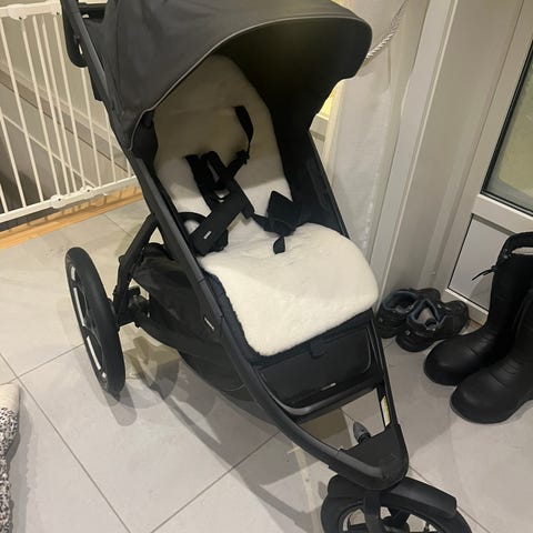 Kjøpt mai 2025 på Barnas Hus. Primært kjøpt for bruk som vogn i bhg til soving og noen få turer og løpeturer. Veldig pent brukt. Regntrekk fra Thule kan følge med.