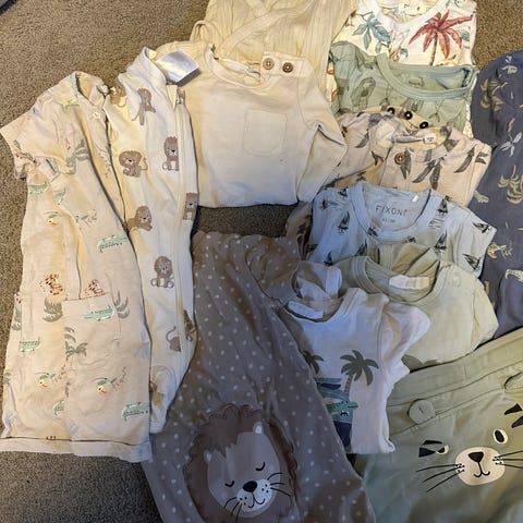 Klespakke til gutt inneholdende 2 x sett fra Adidas, samt en body med sløyfe og vest. Ingen anmerkninger. Dyre- og røykfritt hjem.
