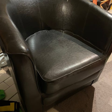 Svart skinnstol, veldig behagelig å sitte i.