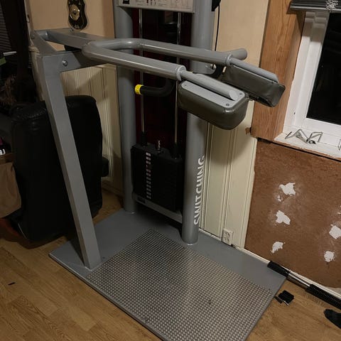Benkoress benk fra hammer strength med stangholder og hamstring trainer