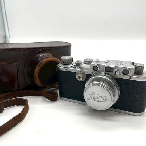 Leica IIIc kamera produsert i 1950 vurderes solgt. Kommer med original kameraveske i skinn.