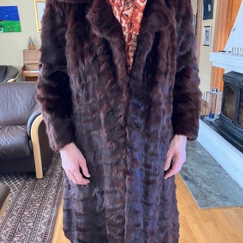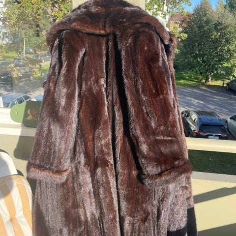 En lite brukt, brun minkpels til salgs.