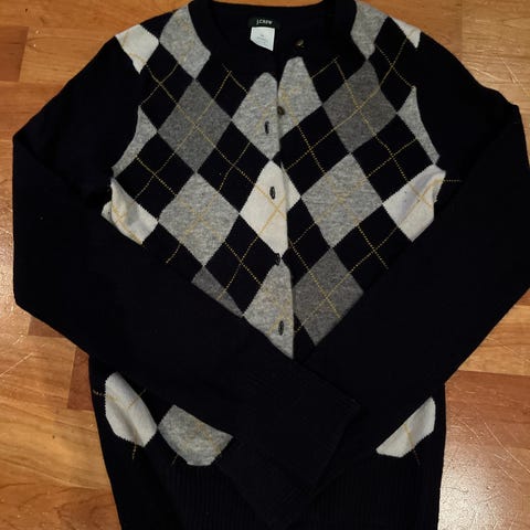 Helt ny cardigan fra VeroModa, svart og grå Argyle mønster 🩶🖤 Superlekker!! Passer både L & XL vil jeg si. Jakken er ikke brukt, men lappene er tatt av. Nypris 600,-