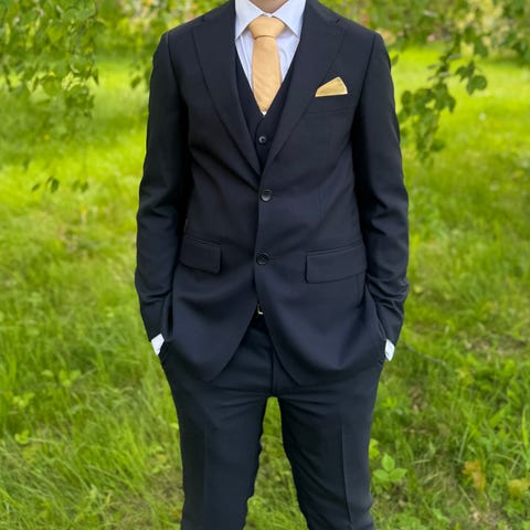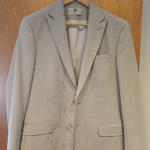 Jakke i str M, to knapper, to lommer foran samt brystlomme. Innerlomme.