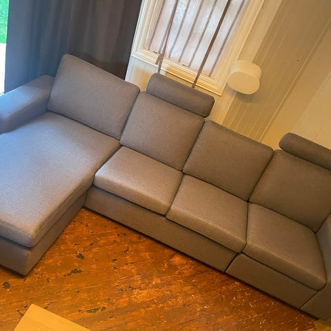 Sjeselong sofa selges. Lengden på sjeselong delen er 150cm.