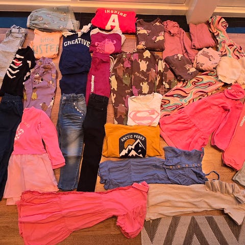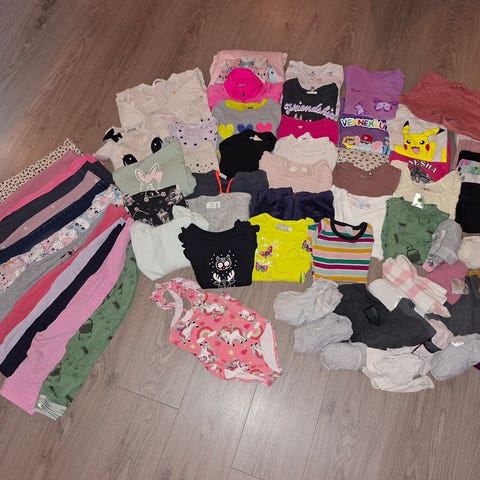 Bomullsklær hovedsakelig til jente. Noen unisex farger.
