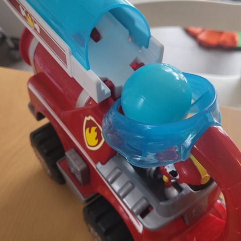 Stor paw patrol truck med figurer. Bilen kjører av seg selv når man trykker på knappen oppe på bilen.