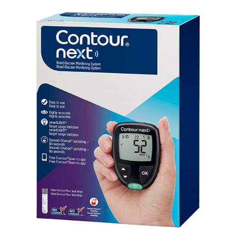 Accu-Chek Mobile blodsukkermåler med tilhørende teststrimler. Enheten er designet for måling av blodsukkernivå og inkluderer alt nødvendig utstyr for testing.