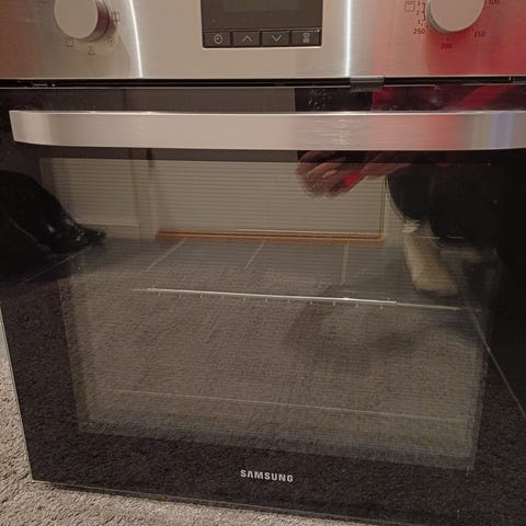 Stekeovn med rustfritt stål og glassdør til salgs. Egnet for baking og matlaging med varmluftsfunksjon.
