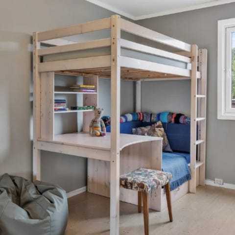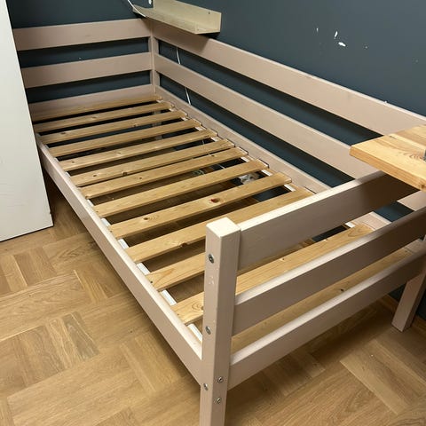 Senga er liten og praktisk og passer inn på de fleste barnerom og gir ekstra gulvplass til lek eller gjester.