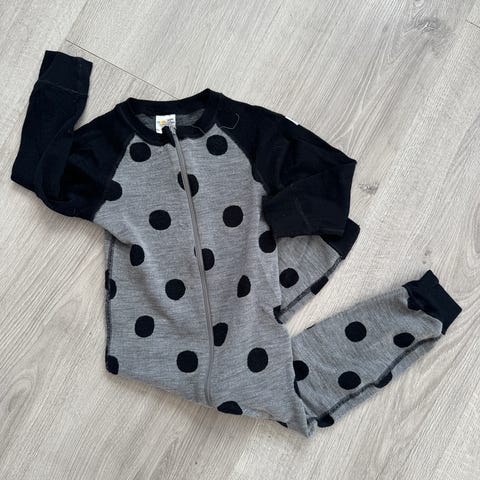 Polarn O. Pyret barneheldrakt i merinoull, størrelse 86/92, farge blå. Passer for både gutter og jenter. Laget av merinoull som gir isolasjon og komfort.
