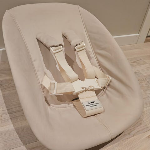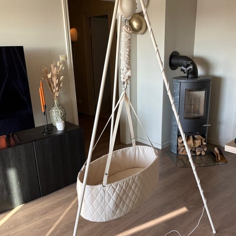 Vuggen har alltid vært brukt med babynest oppi, og fremstår derfor i svært god stand. Ingen flekker eller skader.