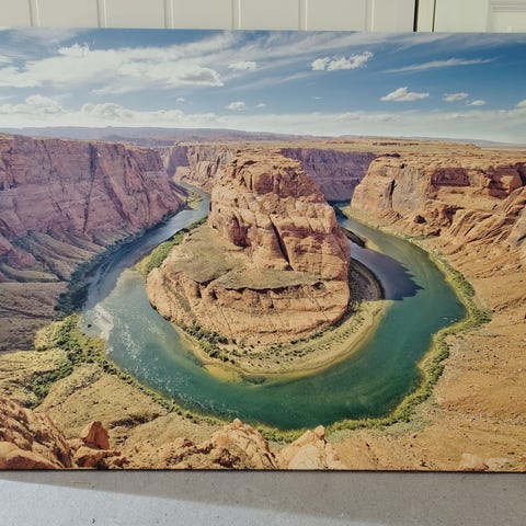 Mountain Lake veggbilde med motiv av innsjø og fjell i svart-hvitt. Størrelse 60x120 cm. Egnet for dekorasjon i hjem eller kontor.