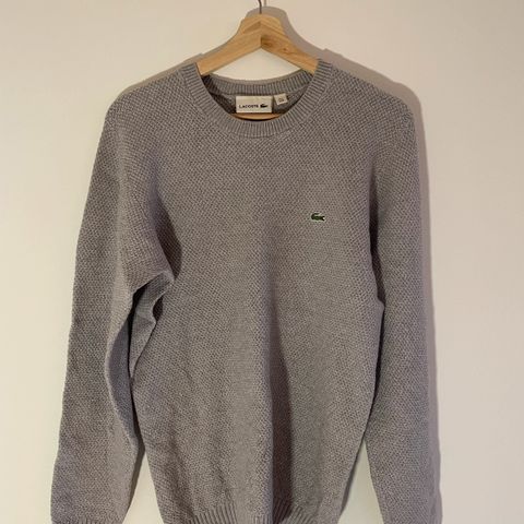 Pent brukt Lacoste ullgenser v-hals str. S/fransk str. 3. Koksgrå, 100% ull.
