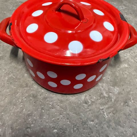 Selger en koselig liten kjele som tåler å stå på varme plater. Bruksområder er feks. til å smelte smør, holde saus varm osv. Den har et merke, men det ser ut som enten tall eller bokstaver og det har ikke vært mulig å tyde stempelet. Det har en skandinavisk design og sannsynligvis kan den komme fra Høganes, Rørstrand ol.