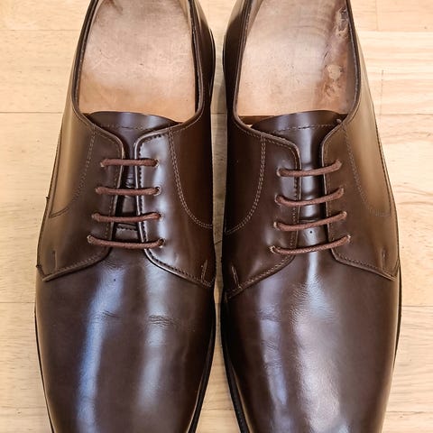 Skoene er laget med både innersåle og midtsåle i lær som former seg etter foten, med en myk wedge såle ytterst. De er satt sammen med good year storm welt. Her har man sko i mange år fremover.