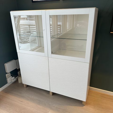 Vitrineskap i hvit høyglans selges.