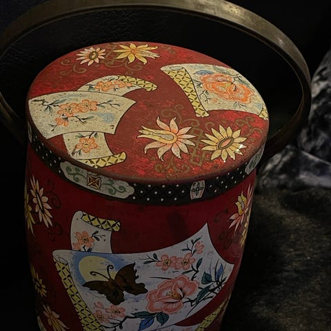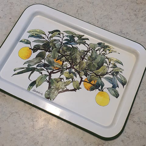 Farger: Mørk blå utvendig, kremfarget innvendig.