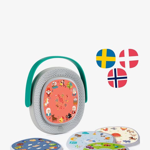 TIMIO, det interaktive lydlæringsleketøyet, hjelper barn med å utvide kunnskapen og ordforrådet fra 2-6 år. Lær alfabetet, tallene, fargene, dyrene og gjenstandene, lytt til historier, musikk og barnesanger. Alt på 8 språk.
