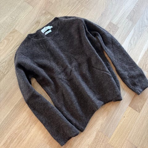 Kvalitet Arnie Says genser i størrelse S. Laget av 90% ull og 10% kashmir. Fargen er grå . Genseren har rund hals , lommer på sydene . Bakk delen er lengre enn foran som gjør modellen ekstra kulere.