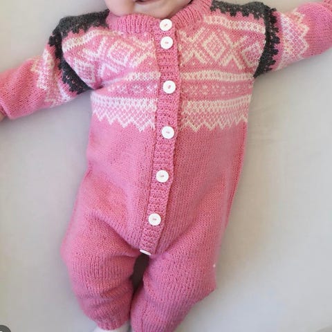 Rosa tykk ulldrakt fra Sparkjøp som koster nesten 500kr ny. Passer fint som yttertøy bl.a. str 50-56.