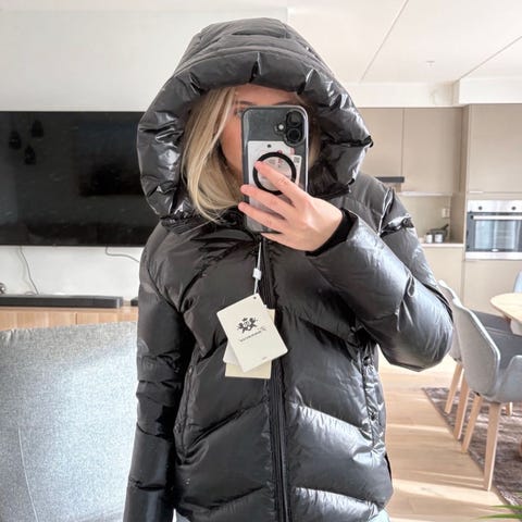 Jakken er ikke brukt, kun prøvd, men den ble i varmeste laget for meg. Nypris kr 3599,- (se bilde av pris)