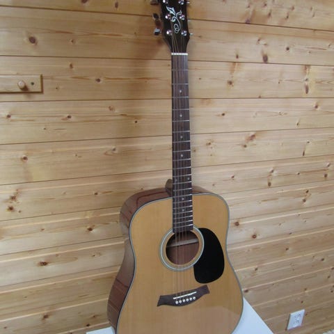 The solid Spruce top allows the full and large sound of the dreadnought shape to resonate and vibrate properly when played, giving a balanced and loud tone that can handle chordal strumming and delicate fingerpicking equally well.