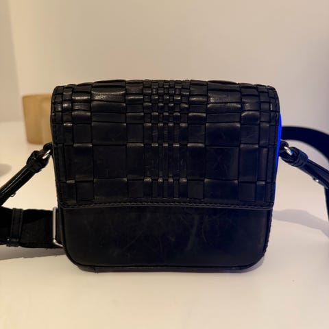 Elvira knotbag fra Markberg i fargen light Caramel. En kul veske som lukkes ved å samle håndtakene og med trykknapp. Den er lite brukt men har et lite område med lite synbare små flekker/ prikker( se siste bilde).