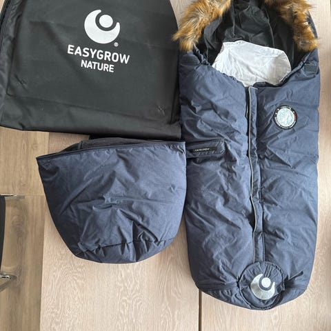 En sort Voksi Urban dunpose. Synlig brukt da den har blitt solbleket på front oppe og «putedelen». Ingen skader på resten av posen og er fortsatt en fin vognpose til bruk i barnehagen :) Kan brukes fra 0-4 år med forlenger delen.