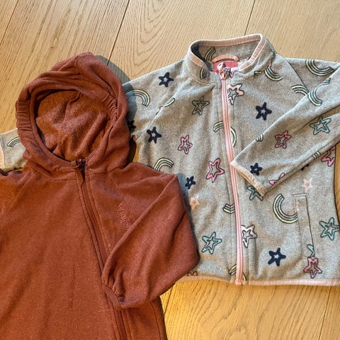 Vårjakke i 86, fleecebukse i 86 og fleecejakke i 86/92