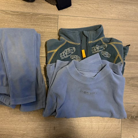 Pent brukt vårjakke med bomullsfôr (str. 80) og godt brukt bukse (str. 86) og jakke i fleece (str 86/92) for 50 kr samlet. Oppbevart innendørs i et parfyme-, dyre- og røykfritt hjem.