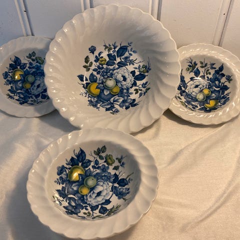 5 vakre dessertskåler + 1 serveringskål