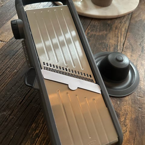 Oxo V-mandolin selges, framstår som ubrukt da den er bare testet 1 gang for å finne ut hvordan den fungerer - har siden blitt liggende i skapet