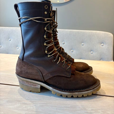 Skoene er Whites sin service boot modell, basert på design fra 1930 tallet som ble brukt for militæret. De har god støtte for hele foten, og halvsålen gjør de overraskende myke og støtdempende. Læret er av roughout typen med et lag voks utenpå, som holder regn og snø ute. Etter hvert som vokser slites av forandrer utseendet seg, og skoene blir enda tøffere. Se siste bilde. Må kan alltids vokse de på nytt igjen også.