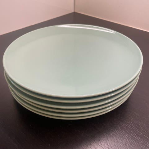 8 blå store middagstallerkener til salgs for kr. 200 for alle 8.