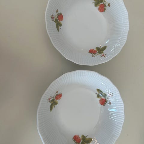 kaffekopp og tallerken sett i hvit farge. Settet inkluderer kopper og tilhørende tallerkener til 6 personer.