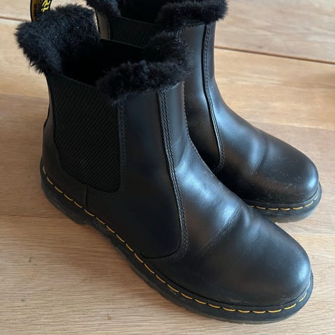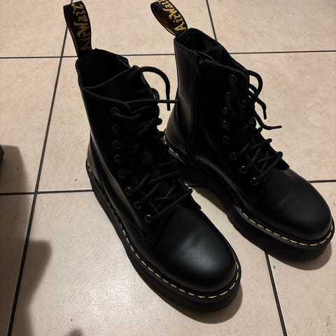 Dr. Martens støvler i størrelse 41 med svart farge. Støvlene har snøring og gummisåle, egnet for bruk som fottøy i ulike sammenhenger.