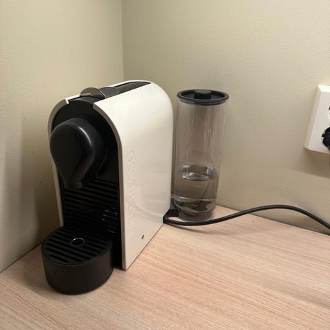 Nespresso Pixie kapselkaffemaskin i svart farge. Kompakt design med vannbeholder bak. Egnet for enkel og rask tilberedning av kaffe ved bruk av Nespresso-kapsler.