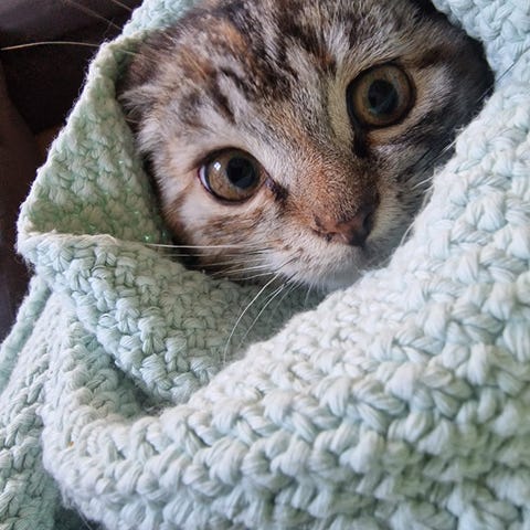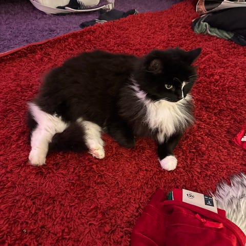 Hun bruker dokasse og spiser godt . Vokst opp med barn og er mye håndtert.