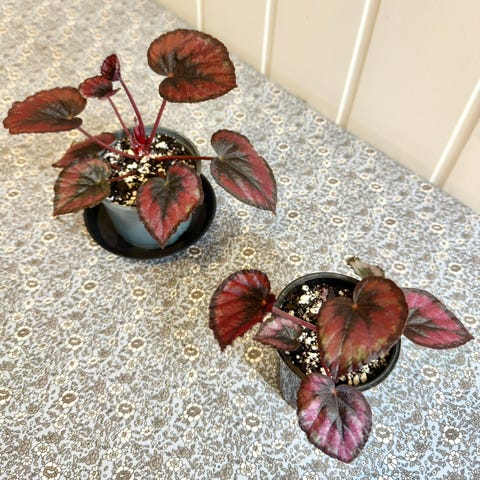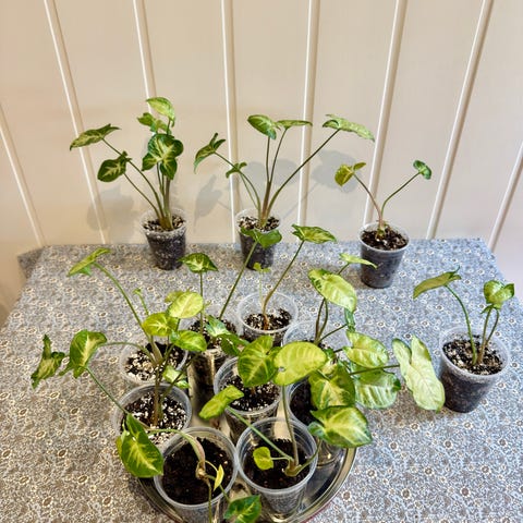 Tatt fra morplanten, først rotet i vann og deretter plantet i jord. Stiklingene er sunne og godt etablerte, klare for videre vekst.