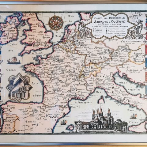 Historiebok med tekst og illustrasjoner, inkludert kart og portretter. Boken har et grønt omslag med dekorative elementer og en portrettillustrasjon på forsiden. Inneholder historiske beskrivelser og informasjon, trykket på papir. Kan levere i Oslo, ellers pr post.