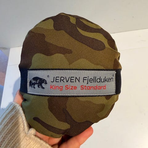 Thermo har samme størrelse som Jervenduken Original, men er vattert. Vekten på 1300 gram gjør at den er lett og praktisk å bære med seg.