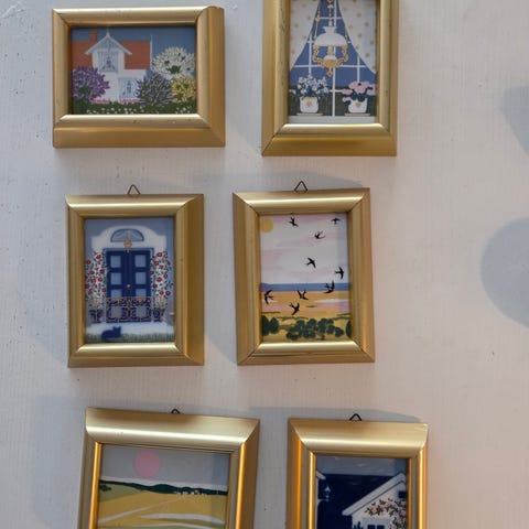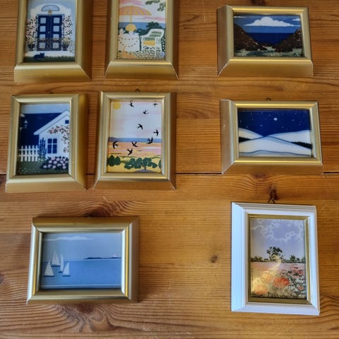 Koselig bilde med 4 innrammede kort fra Egersund Fayance.